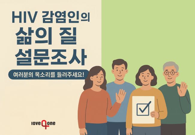 러브포원에서는 HIV 치료 환경과 삶의 질에 대해 알아보고자 설문조사를 실시합니다.